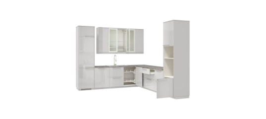 В комплект входит: мойка, смеситель, выпуск, шкафы, ящики, дверцы, столешница, ножки, цоколи, полки, петли и крепления.